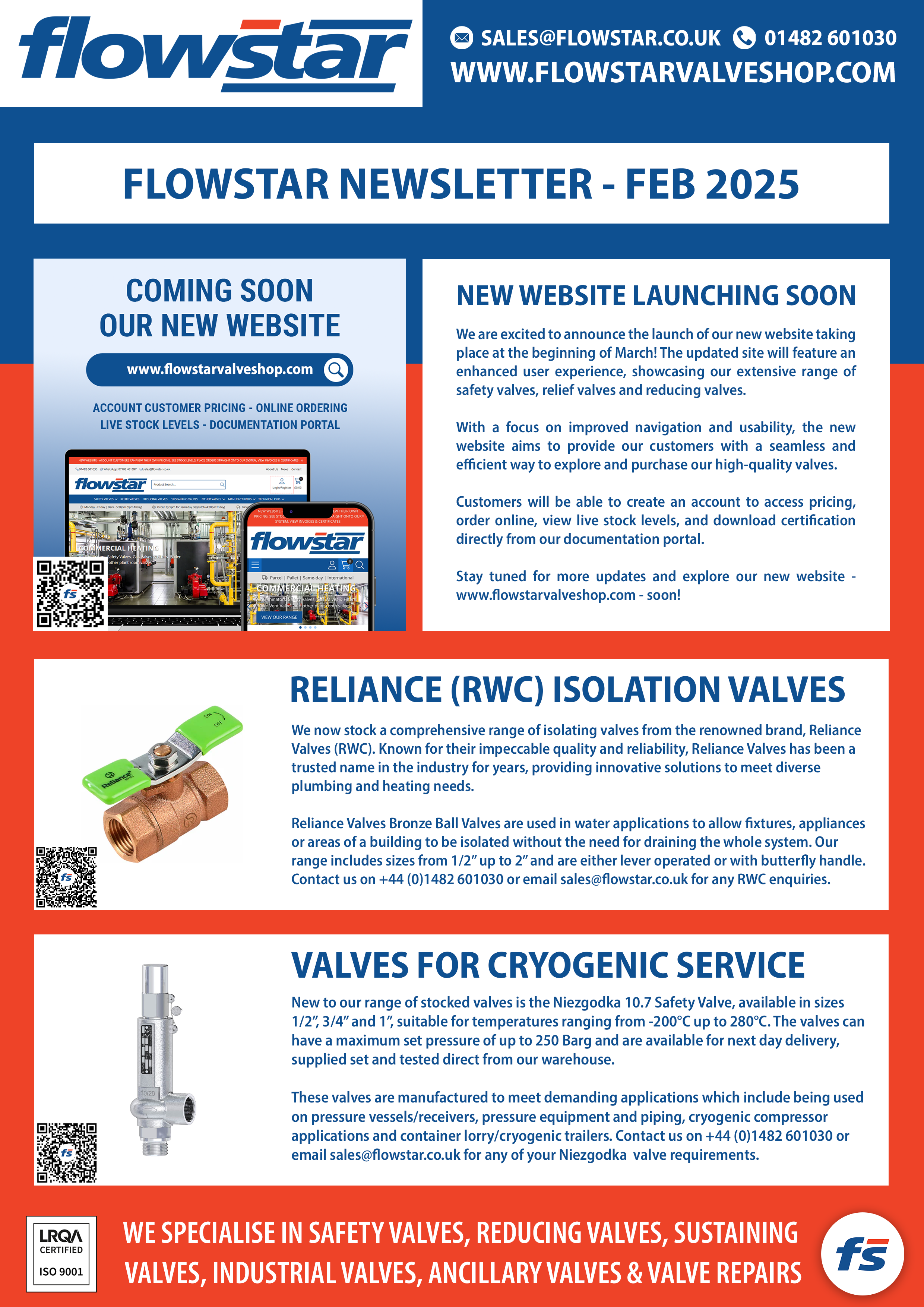 In our latest newsletter, you can find details about the launch of our new Flowstar website, valves we can supply for cryogenic service and how we are now stocking a range of Isolation Valves from Reliance Water Controls (RWC).